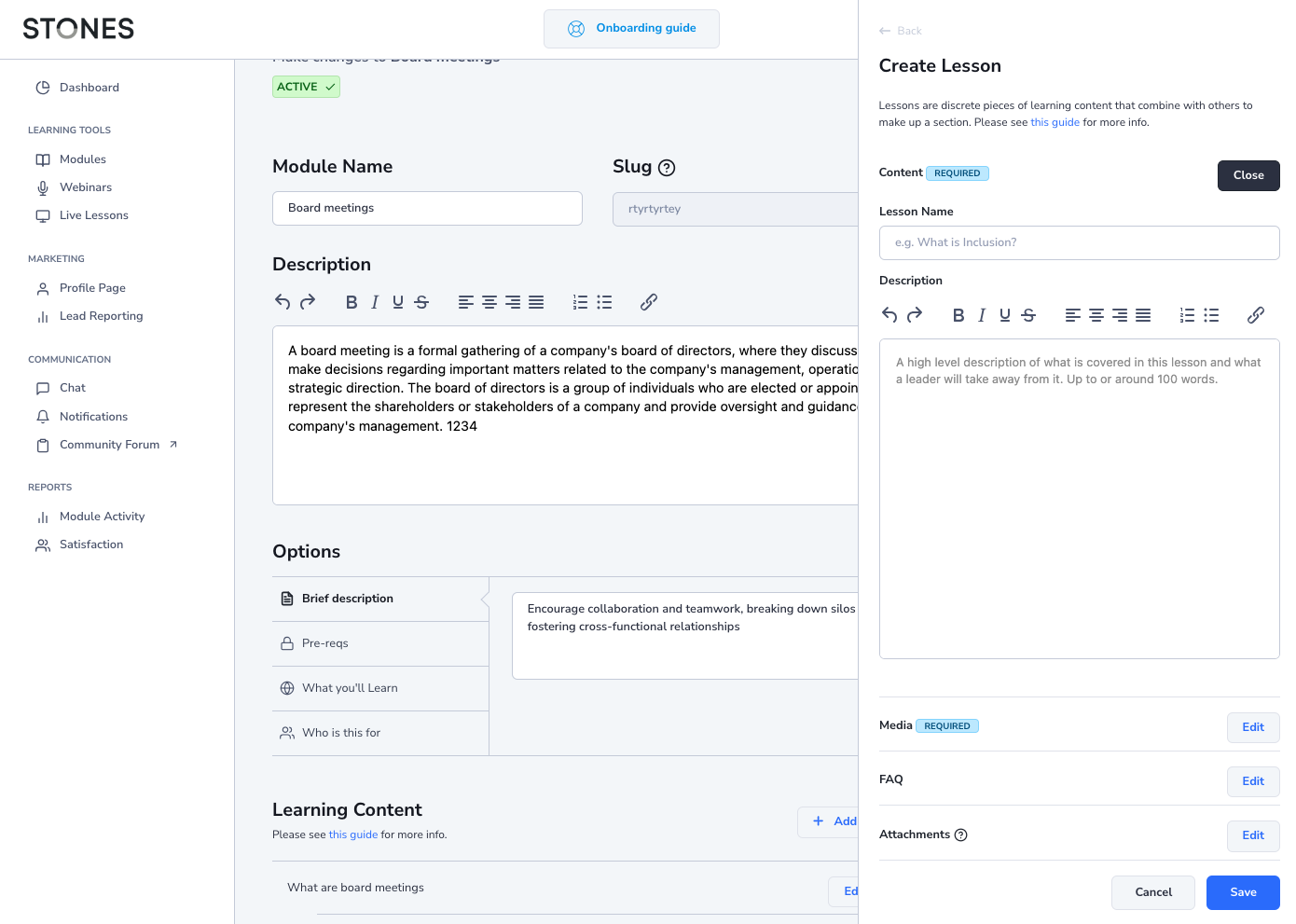 For example, a module learning content structure might look something like this:
